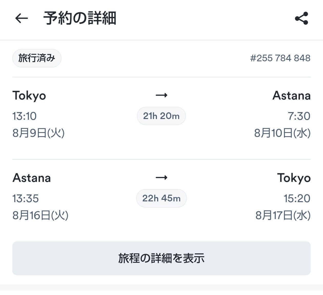 野上親子の飛行機(僕とコンタクト取る前から買ってた)と僕が取得していた飛行機が偶然ほぼ同じ便で、アルマトイまでの便が完全に同じでした。